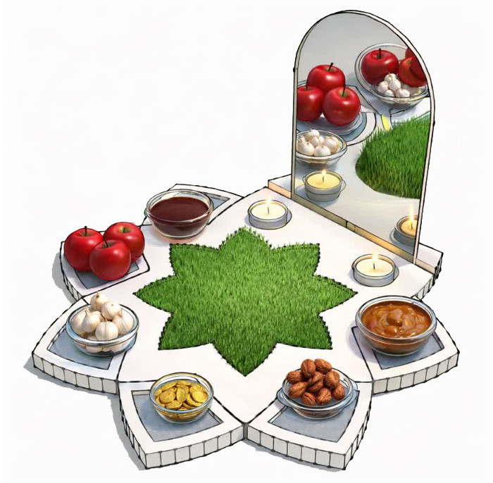 این طرح هفت سین شامل 7 قطعه میباشد که با 2 مدل مختلف قالب طلقی ساخته میشود